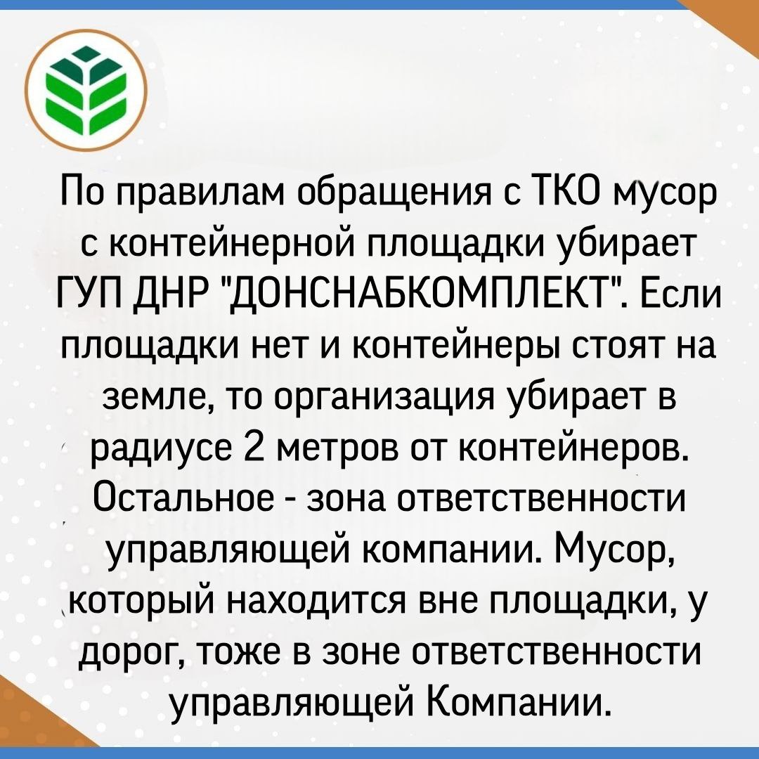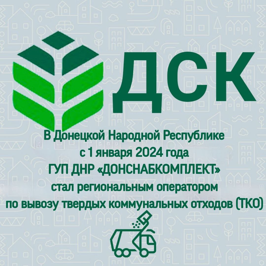 С 1 января 2024 года региональным оператором по обращению с ТКО является ГУП ДНР "ДОНСНАБКОМПЛЕКТ". Это предприятие отвечает за сбор, вывоз и обработку отходов, обеспечивая санитарную безопасность.