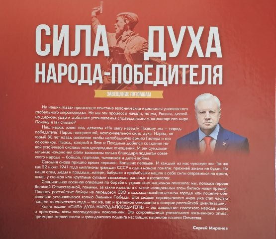 "Книга памяти "Сила духа народа-победителя" – это завещание советского народа детям и правнукам, всем последующим поколениям".