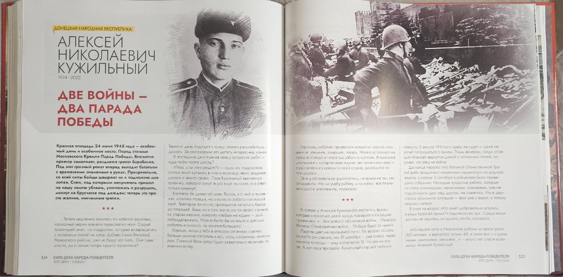 В книге опубликована статья "Две войны – два парада Победы", посвященная нашему земляку, чья жизнь – это живое свидетельство преемственности подвигов.