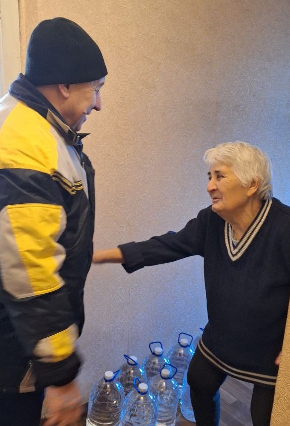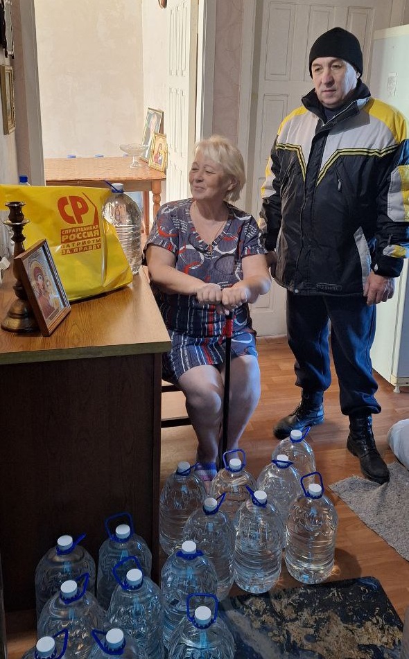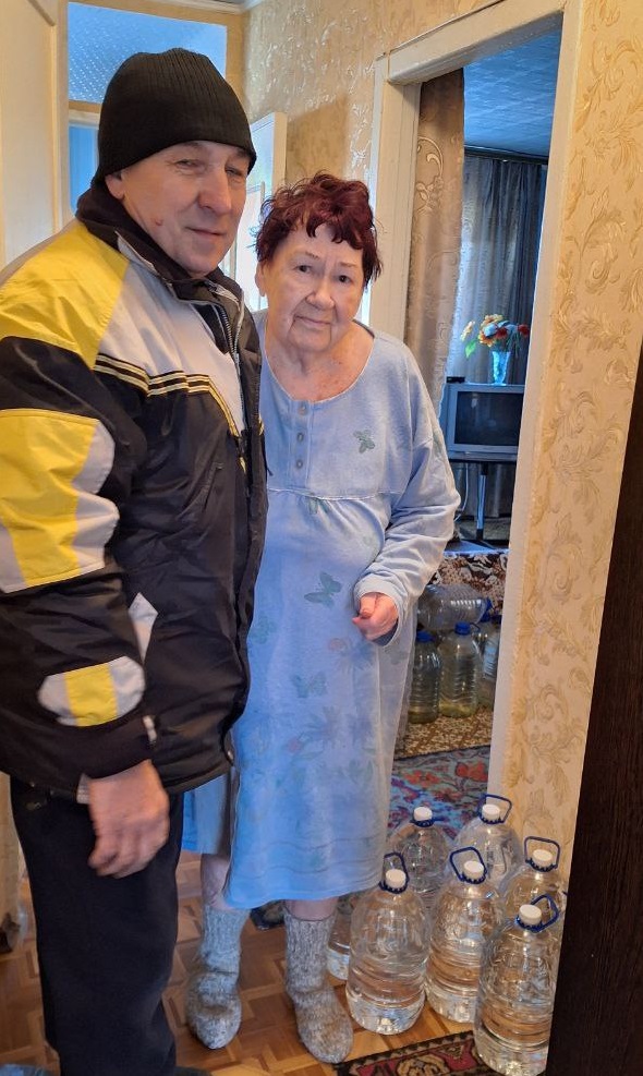 В условиях зимней стужи доставка воды прямо в дом становится вопросом выживания! И здесь на помощь пришел наш активист Сергей Воробьёв, благодаря которому гуманитарные наборы были доставлены до самых дверей: