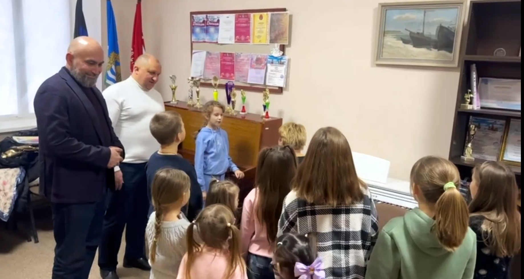 Вместе с ребятами Алексей Осипов и Таймураз Малкаров отложили партийные дела и с удовольствием исполнили несколько новогодних песен под живой аккомпанемент.