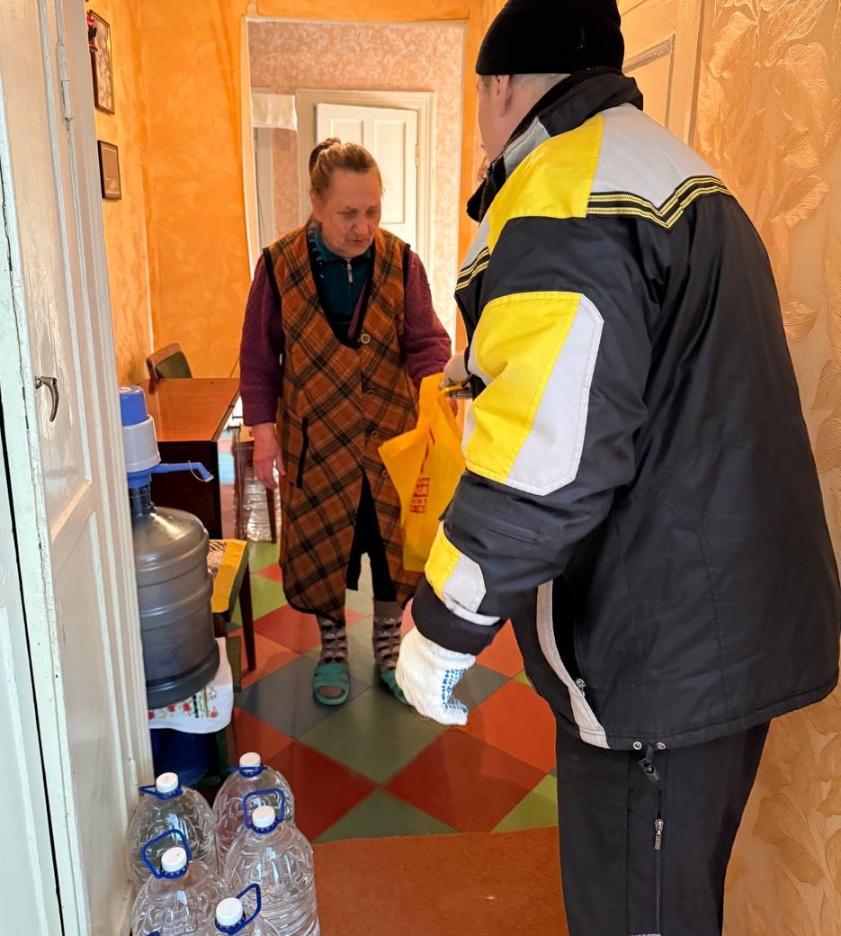 В эти суровые зимние дни доставка воды прямо в дом – это вопрос не комфорта, а выживания! И здесь на сцену выходит наш активист Сергей Воробьёв, который доставил гуманитарные наборы прямо к дверям: